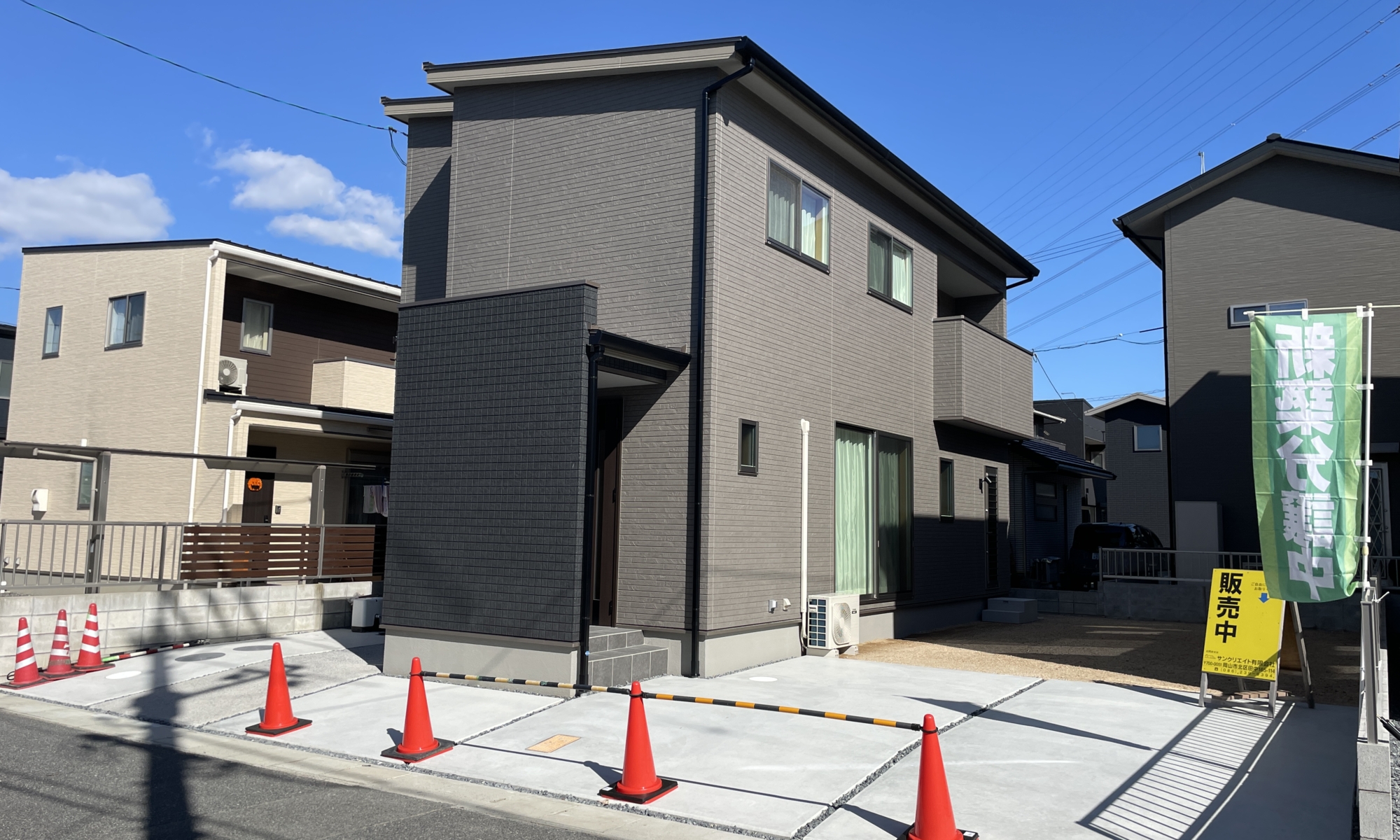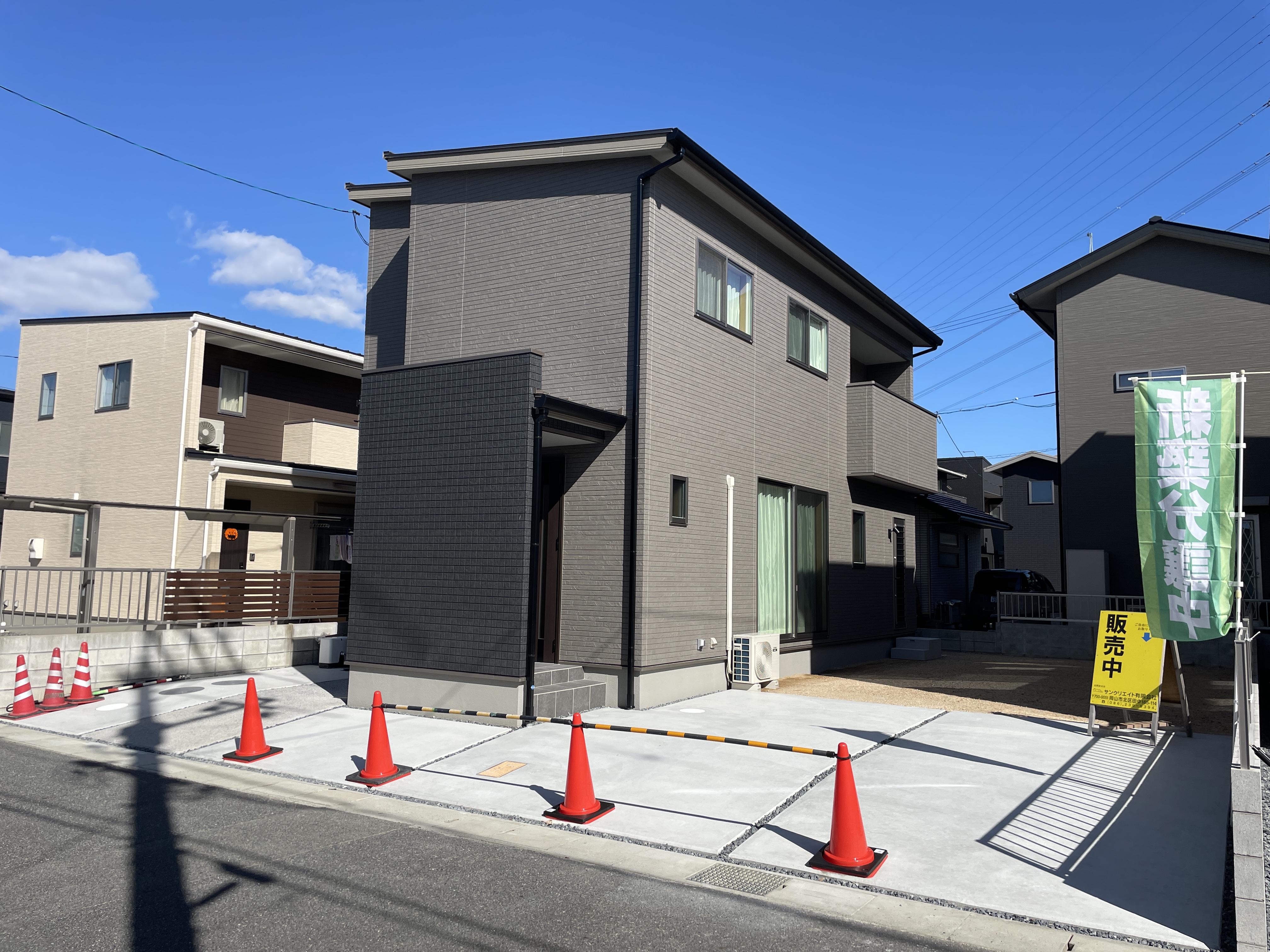 狭い道路が多い庭瀬エリアでゆったり幅の道路に面していて